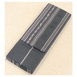 ![]() 帯は2種類あります。 男性の帯は、大きく分けて2種類で、 「角帯」と「へこ帯」になります。 上の写真は「角帯」で、細い帯になります。 「へこ帯」は、広いふわふわの柔らかい帯です。 簡単に結べるのは「へこ帯」ですが、最近はほとんど 「角帯」が使われています。 「角帯」も結び方は覚えてしまえば簡単です。 簡単に言ってしまえば、2回結ぶだけの堅結びなんですが、 形を作るために、長さの調整と結ぶ手順が必要です。 最近は、インターネットの動画サイトで見られます。