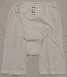 ![]() 和装の下穿きです! 和装の股われパンツです。 着物を着てのトイレが楽になるので、 特に冬にご利用になる方が多いです。 長さは、ショーツ・3分丈・5分丈・7分丈・9分丈の 5種類と、それぞれにMとLがあります。 上の写真は、3分丈になります。
