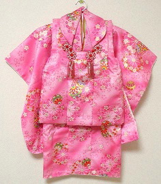 ![]() 3歳の女の子用・被布セットです。 七五三の衣装というと、レンタルや写真館でという 方が多くなっています。 確かに1度しか着ないかもと思うと、買っても仕方 ないと思われるでしょうね。 それでも、この3歳の晴れ着のセットに関しては、 毎年たくさんご購入いただいています。 理由は、お値段がレンタルと変わらないか、むしろ 安いこと、お母さんでも簡単に着せてあげられるの で、 着付けの費用がかからないし何回も着せて あげられるからです。 7歳の晴れ着ほどおおががりでないので、 お正月やおひな様に着ていただけます。