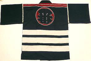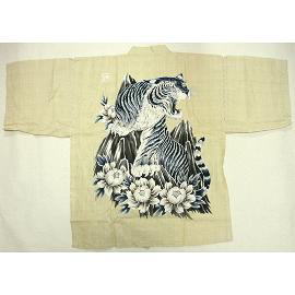 ![]() バックプリントの甚平です。 夏になると、いろいろなところで甚平を見ると思います。 ここでは、当店ならではの珍しい甚平をご紹介します。 上の写真は、背中に大きな図柄のある甚平です。 その年によって、作製されている図柄が違いますので、 毎年楽しみにしていただいています。
