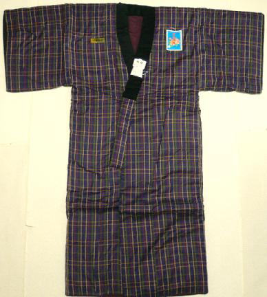 綿入れの丹前です。 簡単に言うと、綿入れ半天の長いものです。 あるいは、かいまき半天と同じように、足首まである 綿入れの半天になります。 暖かさは抜群ですが、くるまったら動きたくなくなるかも しれませんね。