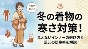 これらを駆使すれば、見た目は涼やかな着物姿でも、中はポカポカという状態を作れます。ただし、着物の隙間からチラ見えしないように注意が必要です。