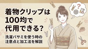 専用のクリップが手元にない時は、大きめの安全ピンやブローチで代用することも可能です。ただし、着物やショールの生地を傷めないよう、ピンを刺す場所には十分注意してください。