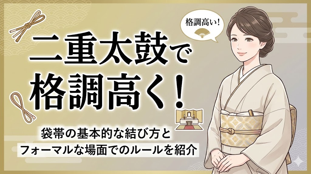 素敵な着物姿で、結婚式やお祝いの場に出席したい。そんなとき、帯の結び方に自信がなくて、少し不安になってしまうことはありませんか。特に二重太鼓は、日本の礼装に... -