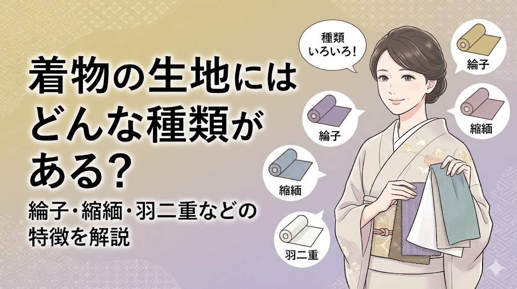 着物の生地には、本当にたくさんの種類があって、選ぶのは楽しい反面、ちょっと難しいと感じる方もいるかもしれませんね。正絹、綸子、縮緬、羽二重といった名前を聞い... -
