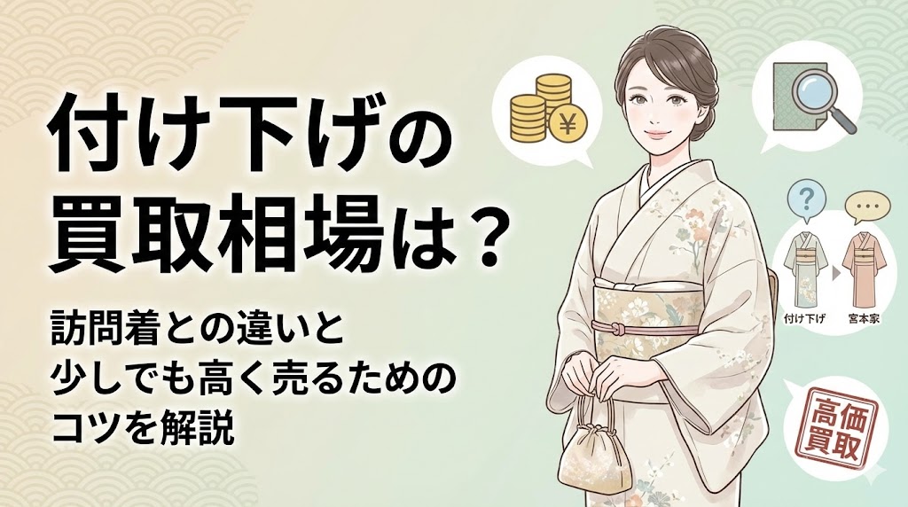 箪笥の中に眠っている「付け下げ」と思われる着物を見て、処分に困っていませんか?訪問着によく似ているけれど、実際に売るとなったらどれくらいの値段がつくのか気に... -