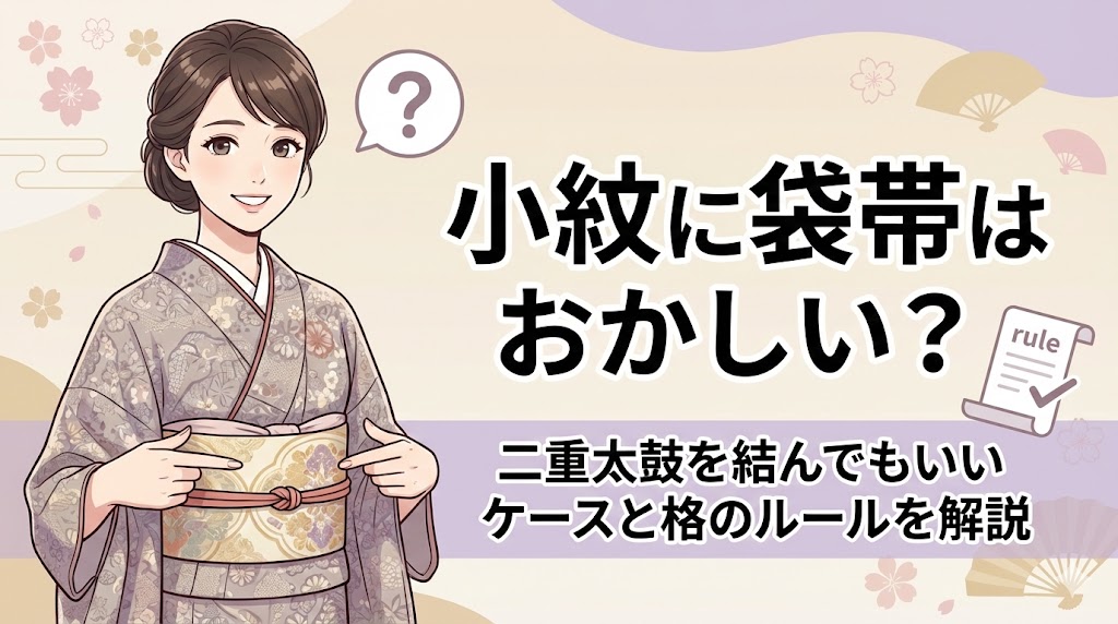 「手持ちの素敵な袋帯を小紋に合わせたいけれど、マナー違反にならないか不安」と悩んでいませんか?着物には「格」というルールがあるため、小紋に袋帯はおかしいので... -