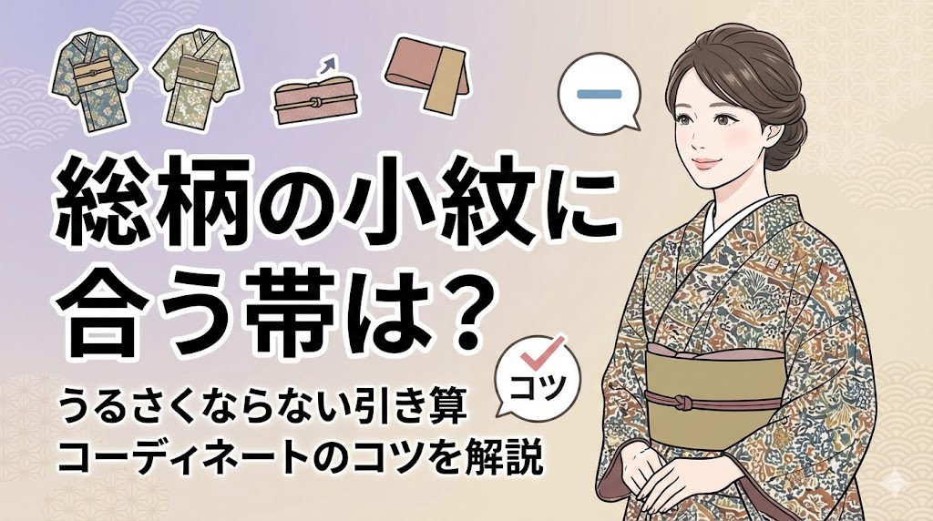 華やかで可愛らしい総柄の小紋を手に入れたけれど、いざ着てみようとすると「どの帯を合わせればいいの?」と悩んでしまうことはありませんか?柄が多い着物はインパク... -