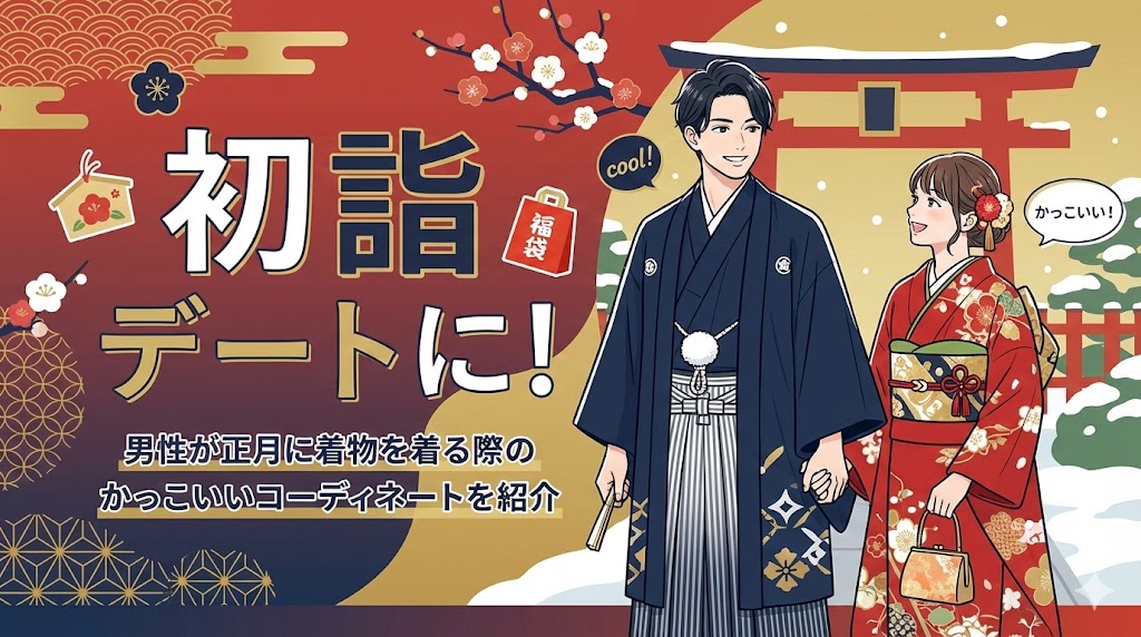 そろそろお正月、次の初詣デートはいつもと違う雰囲気で過ごしてみませんか?男性が正月に着物を着るという選択は、実はとてもスマートでかっこいいコーディネートの一... -