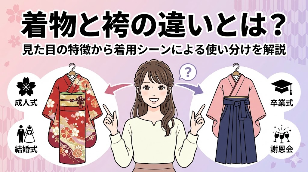 卒業式や成人式のシーズンが近づくと「着物と袴の違いは何だろう?」と疑問に思う方が増えます。なんとなく袴の方が動きやすそうなイメージはあるけれど、実際に自分が...
