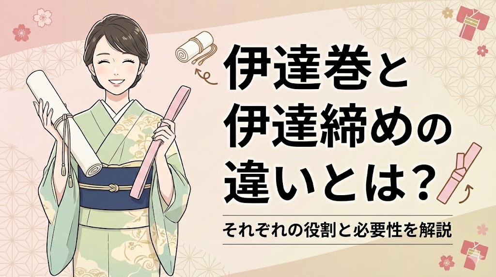 着付けを始めようとしたとき、道具の名前が似ていて混乱してしまった経験はありませんか。特に着物の「伊達巻」と「伊達締め」の違いは、多くの初心者が最初につまずく... -